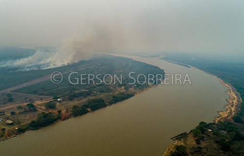Keywords: 2020, Pantanal, Mato Grosso do Sul, Horizontal, Corumba, Rio Paraguai, Porto da Manga, Wildfire, Fire, Conflagration, Smoke, Environment, Aerial view  |