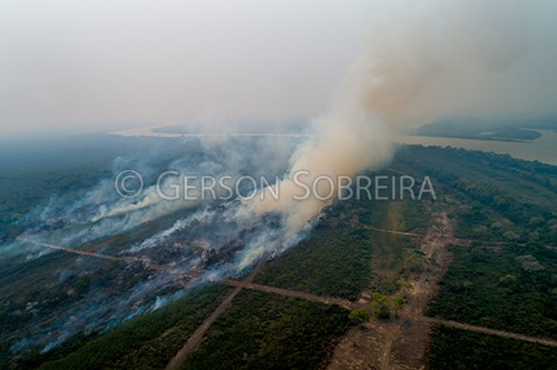 Keywords: 2020, Pantanal, Mato Grosso do Sul, Horizontal, Corumba, Rio Paraguai, Porto da Manga, Wildfire, Fire, Conflagration, Smoke, Environment, Aerial view |