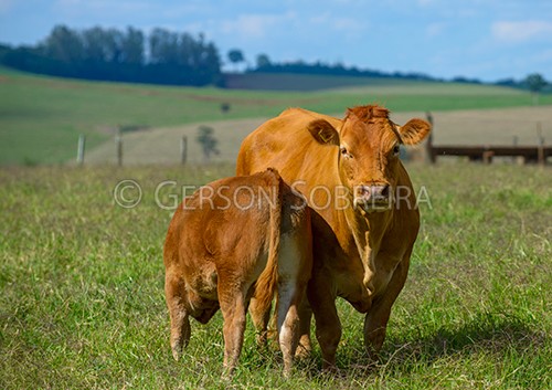Keywords: 2020, Limousin, Gado Pecuaria, Bovino, Parana, Marilandia do Sul, Horizontal, Vaca, Femea, Bezerro, Amamentaçao, Mamando |