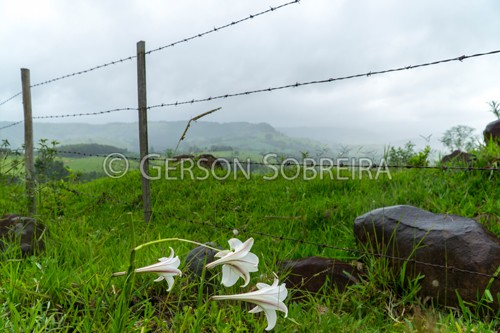 Parana, Arame farpado, Cerca, Rural, Paisagem, Lirio Regalo, Lilium regale, Flor, Horizontal, 2021, Faxinal