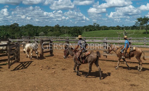 Keywords: 2021, Brahman, Cattle Livestock, Bovine, Horizontal, Acre, Rio Branco, Bull, Male, Cowpoke Buckaroo Cowboy, Cutting out, Corral |