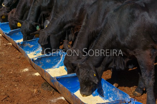 Keywords: Horizontal, Nutrition, Female, Cow, Brangus, Ration, Eating, Feeder, Firstborn, 2021, Londrina, Parana, Cattle Livestock, Bovine |