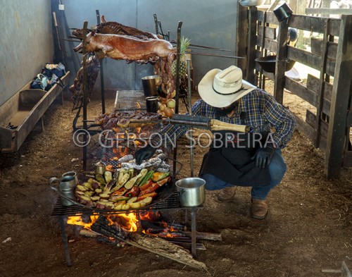 Keywords: 2022, Homem, Assador, Trempe, Assado, Itatinga, Horizontal, Sao Paulo, Fogo de chao, Churrasco, Comida, Alimentaçao, Cozinha caipira, Campeira |