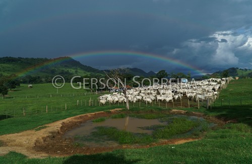 Keywords: 2022, Nelore, Corral, Cow group, Group, Cattle Livestock, Bovine, Ortigueira, Parana, Horizontal, Rainbow, Landscape, Rural |