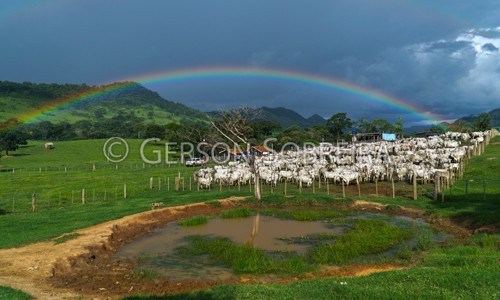 Keywords: 2022, Nelore, Corral, Cow group, Group, Cattle Livestock, Bovine, Ortigueira, Parana, Horizontal, Rainbow, Landscape, Rural |