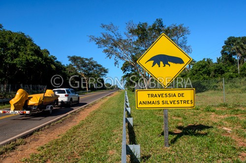 Keywords: 2023, Highway, Road, Sao Paulo, Teodoro Sampaio, Parque Estadual Morro do Diabo, Horizontal, Plate, Signaling signalling, Animal crossing, Anteater |