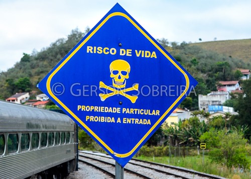 Keywords: Urbano, Caveira, Perigo, Risco de vida, Trem, Sao Paulo, 2023, Horizontal, Guararema, Estaçao, Ferroviaria, Ferrovia, Placa, Sinalizaçao |