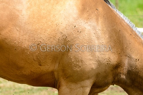 Keywords: 2023, Picada, Irritaçao, Mosca-do-estabulo Mosca do estabulo, Quarto-de-Milha Quarto de Milha, Potra, Femea, Cavalo, Equino, Parana, Santa Fe, Horizontal, Stomoxys calcitrans |