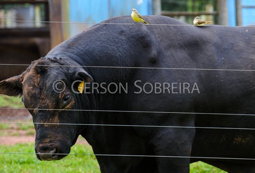 Keywords: 2023, Relaçao ecologica, Mutualismo, Bem-te-vi-do-gado Bem te vi do gado, Machetornis rixosa, Aberdeen Angus, Horizontal, Itatinga, Sao Paulo, Gado Pecuaria, Bovino, Touro, Macho, Passaro |