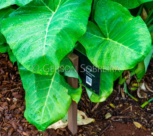 Keywords: Parana, Quadrado, PANC Plantas Alimenticias Nao Convencionais, 2023, Cascavel, Agricultura Agricola, Xanthosoma taioba, Folhagem, Placa, Sinalizaçao |