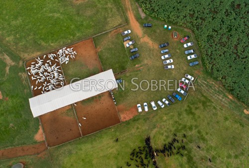 Keywords: Parana, Jardim Olinda, 2023, Horizontal, Cattle Livestock, Bovine, Cow group, Group, Nelore, Corral, Field day, Aerial view  |