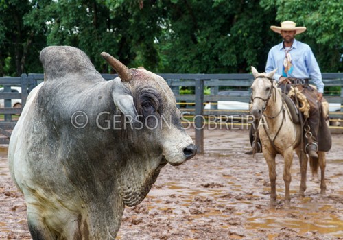 Keywords: Vaqueiro Peao Cowboy, Macho, Touro, Nelore, 2023, Gado Pecuaria, Bovino, Tocando, Conduzindo, Valparaiso, Sao Paulo, Curral, Lama |