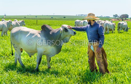 Keywords: Parana, Manso, Santa Fe, Macho, Touro, Nelore, 2023, Horizontal, Gado Pecuaria, Bovino, Tocando, Vaqueiro Peao Cowboy, Docilidade, Mansidao |