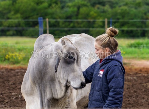 Keywords: Sao Paulo, 2023, Botucatu, Central, Horizontal, Gado Pecuaria, Bovino, Touro, Brahman, Docilidade, Mansidao, Mulher, Jovem, Afago |