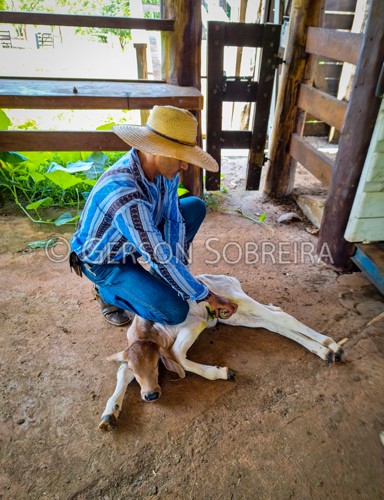 Keywords: Cowpoke Buckaroo Cowboy, Larvicide, Treatment, Belly button, Healing, Vertical, Brahman, Corral, Cattle Livestock, Bovine, Minas Gerais, Boa Esperança, 2024, Bull calf |