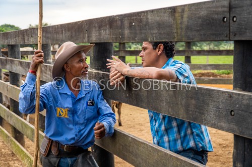 Keywords: Horizontal, Vaqueiro Peao Cowboy, Homem, 2024, Boa Esperança, Minas Gerais, Curral, Conversa, Fazendeiro |