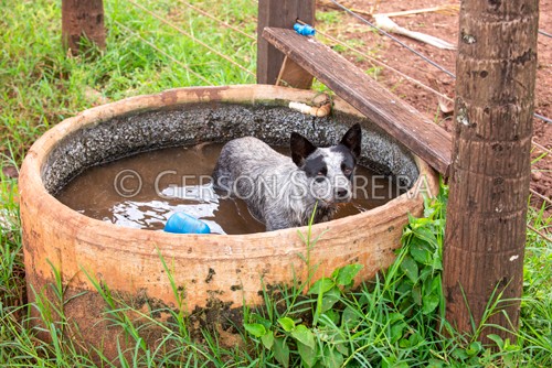 Keywords: 2024, Calor, Blue Heeler, Banho, Bebedouro, Cao Cachorro, Aparecida do Rio Doce, Goias, Horizontal |