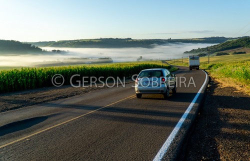 2024, Parana, Horizontal, Campina da Lagoa, Estrada, Paisagem, Rural, Neblina, Nevoeiro, Rodovia