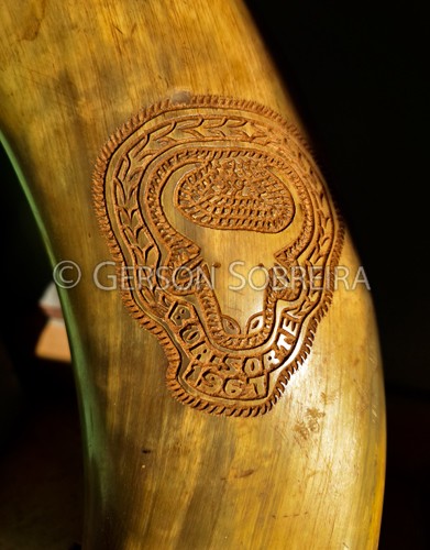 Keywords: 2024, Ornament, Carved work, Bone, Berrante, Vertical, Jardim Olinda, Parana |