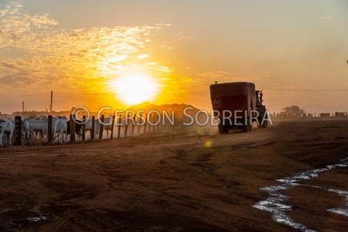 Keywords: 2024, Vagao Misturador, Por-do-sol Por do sol, Gado Pecuaria, Bovino, Confinamento, Quirinopolis, Goias, Horizontal |
