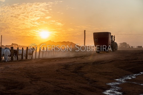 Keywords: 2024, Horizontal, Goias, Quirinopolis, Confinamento, Gado Pecuaria, Bovino, Por-do-sol Por do sol, Vagao Misturador |