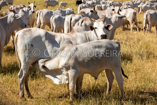Keywords: 2024, Horizontal, Santa Vitoria, Minas Gerais, Nelore, Cattle Livestock, Bovine, Cow, Female, Bull calf, Sucking, Breastfeeding |