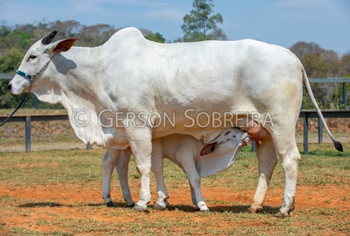 Título: Vaca Nelore e bezerro mamando |