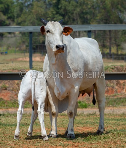 Title: Vaca Nelore e bezerro mamando |