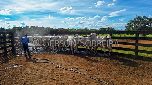 Keywords: Minas Gerais, Brahman, Vaca, 2025, Boa Esperança, Horizontal, Gado Pecuaria, Bovino, Vaqueiro Peao Cowboy, Banho, Curral |