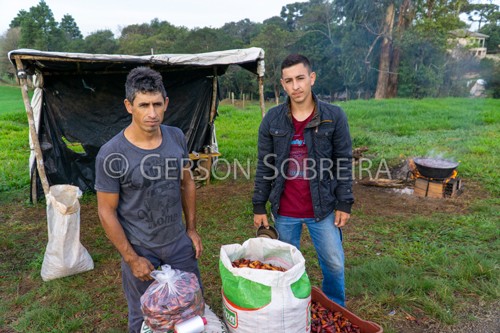 Título: Ademir e Lucas, agricultores - Comércio de pinhão |