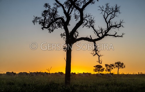 Keywords: Horizontal, Rural, Paisagem, Arvore, Por-do-sol Por do sol, Contra-luz Contra luz, Gado Pecuaria, Bovino, 2025, Nelore, Mato Grosso do Sul, Pedro Gomes, Tourama |