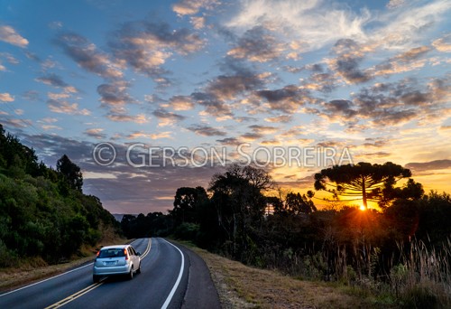 Keywords: 2025, Car, Nature, Horizontal, Pinheiro-do-Parana Pinheiro do Parana, Araucaria angustifolia, Tree, Inacio Martins, Landscape, Rural, Sunset, PR-364, Highway, Road |