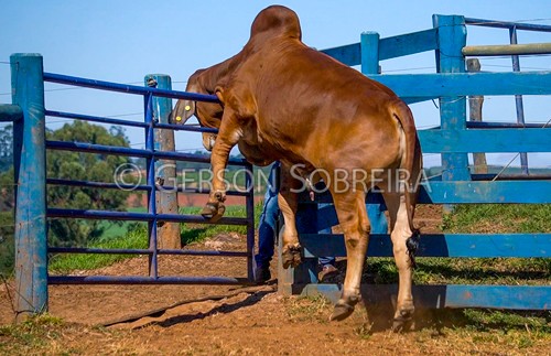 Keywords: 2025, Cerca, Pulando, Fuga, Sao Paulo, Botucatu, Gado Pecuaria, Bovino, Touro, Macho, Brahman, Horizontal |